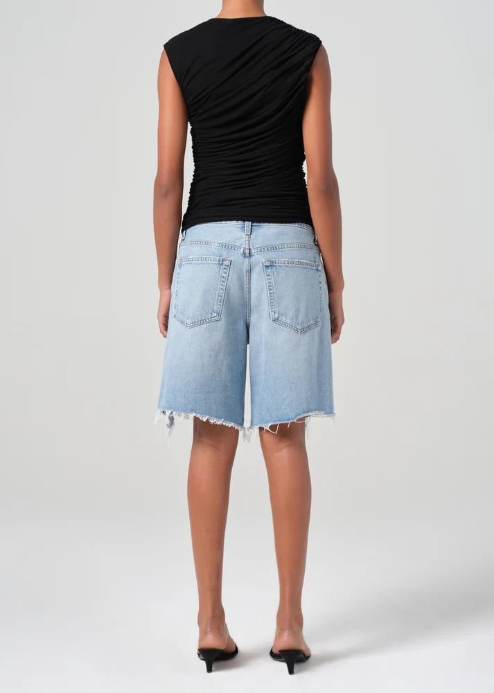 The Indra Short is a season essential, offering a hip-slung fit with a square top block for a relaxed and effortless style. These are AGOLDE’s most eased-up shorts, featuring an upsized fit that combines comfort and casual cool. Crafted from regenerative cotton, these vintage marbled light indigo denim shorts showcase fading, whiskering, and a raw hem for a perfectly worn-in look. Pair with a simple white tank and sandals for an easy, relaxed vibe, or style with a lightweight oversized button-down for a chic, effortless look that’s perfect for warm-weather days.