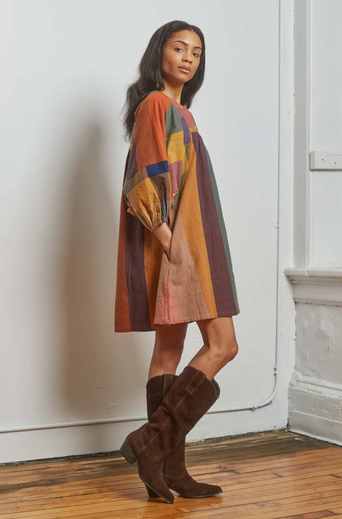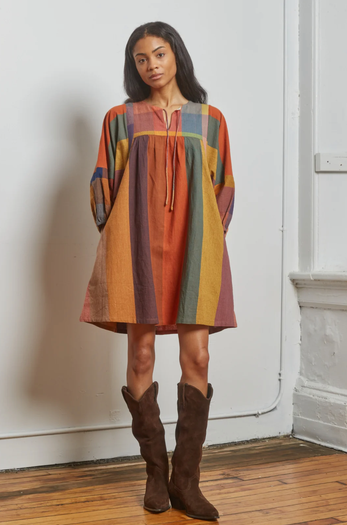 Above-the-knee length works well as a dress or tunic over pants