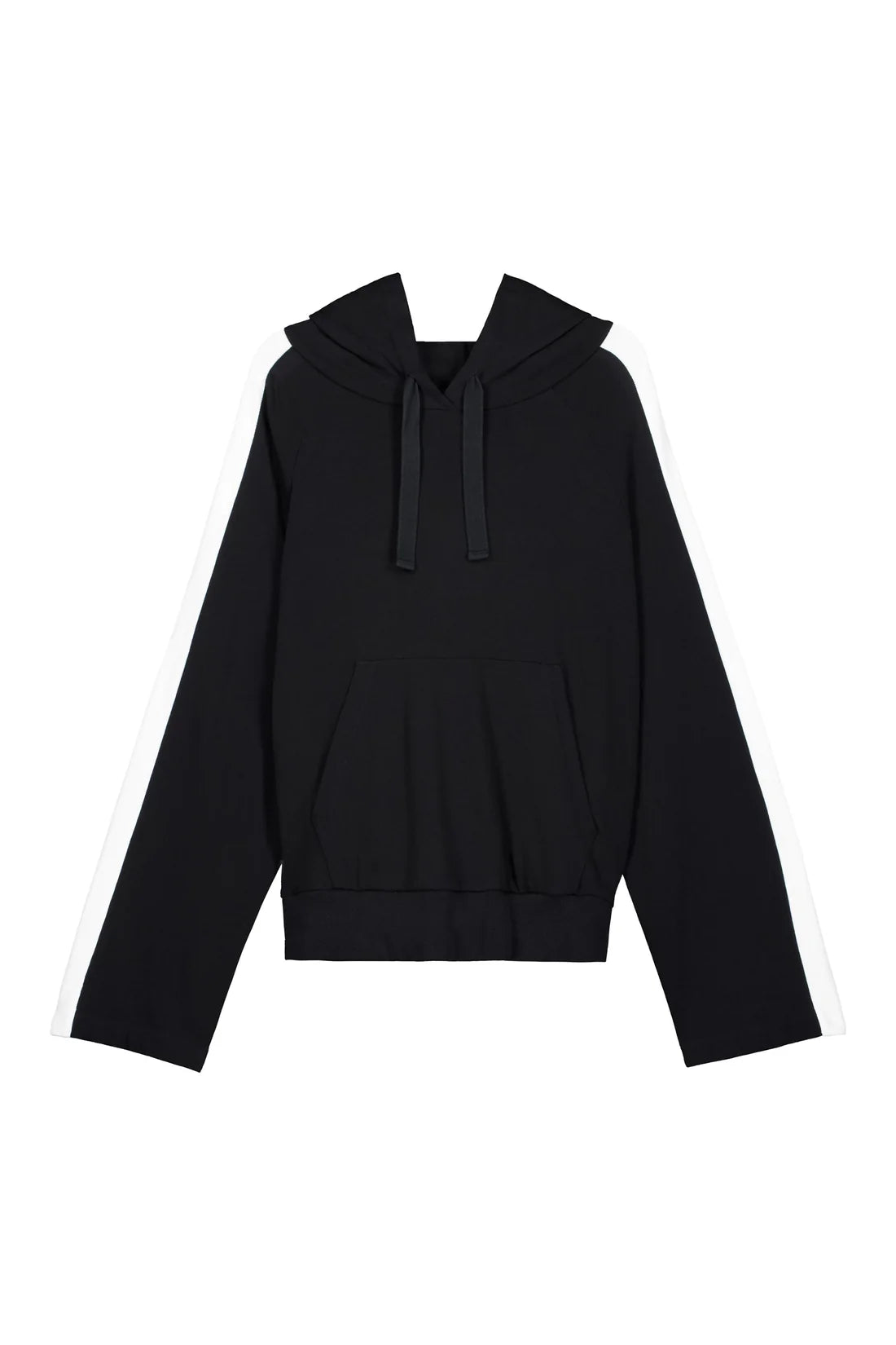 The Contrast Hoodie offers an oversized fit and is detailed with an exaggerated contrast greige stripe down the sleeves. Crafted from heavyweight organic cotton jersey, it features raglan sleeves, a functional drawcord through the hood and a front patch pocket. Wear on its own or pair with the Contrast Trackpant.