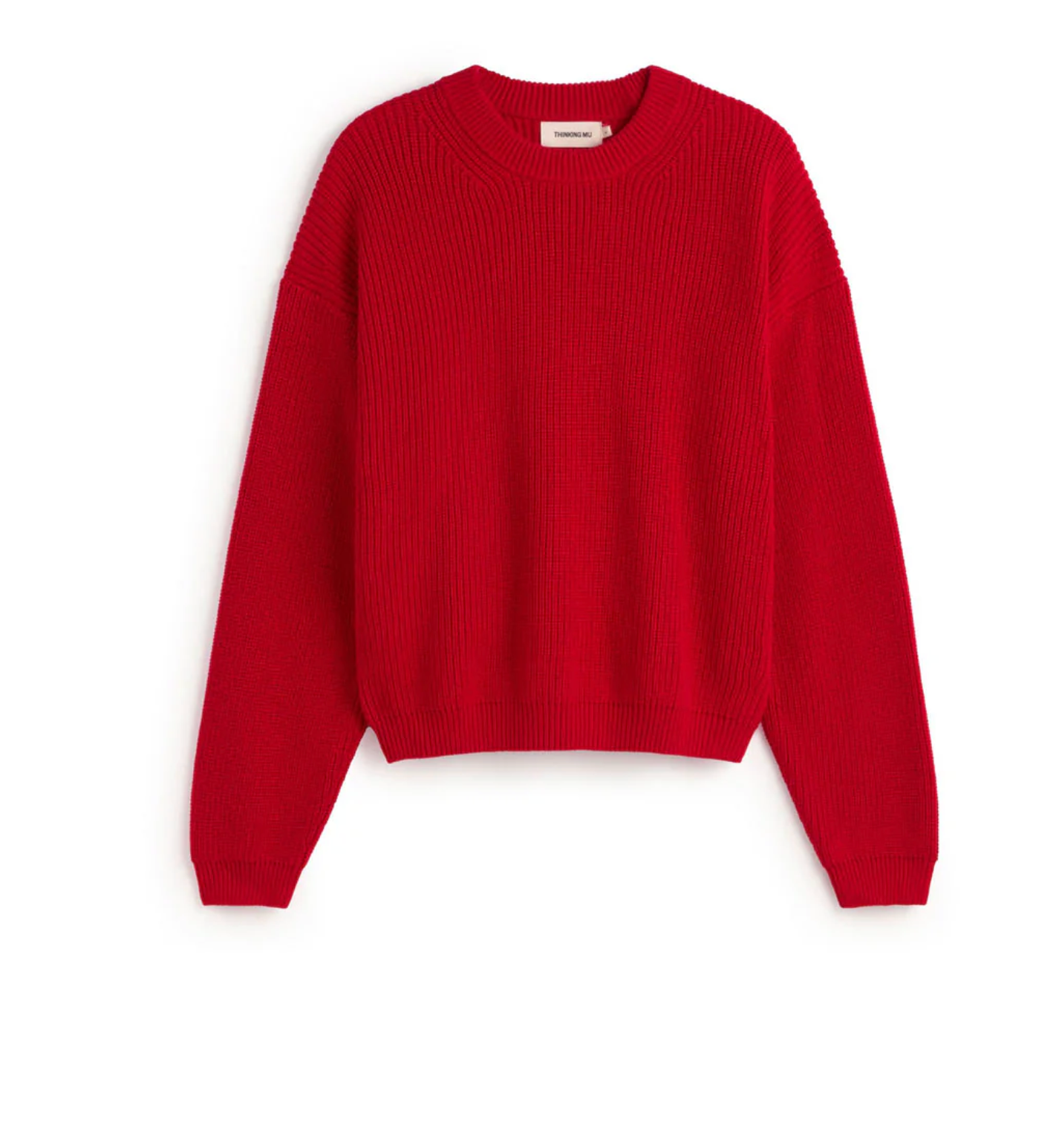 Organic Cotton Carmen Sweater RED | Thinking Mu