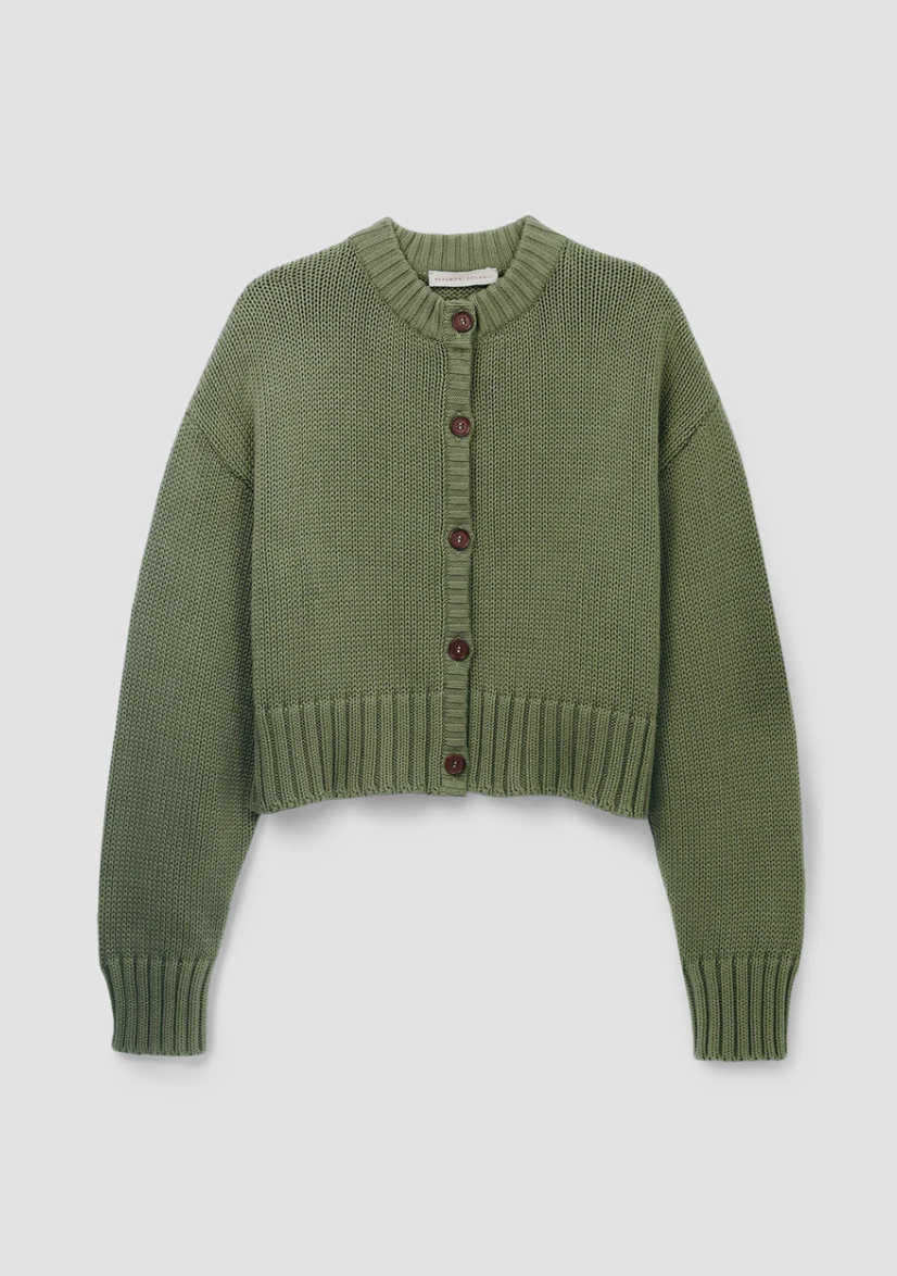 Organic Cotton Knitted Cardigan in Khaki/Olive | Beaumont Organic