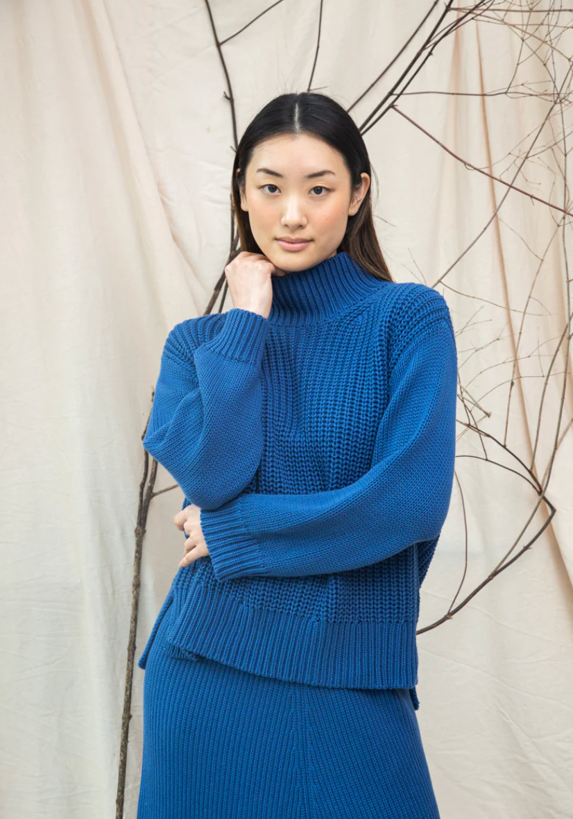Organic Cotton Knitted Cardigan in Ink Blue | Beaumont Organic