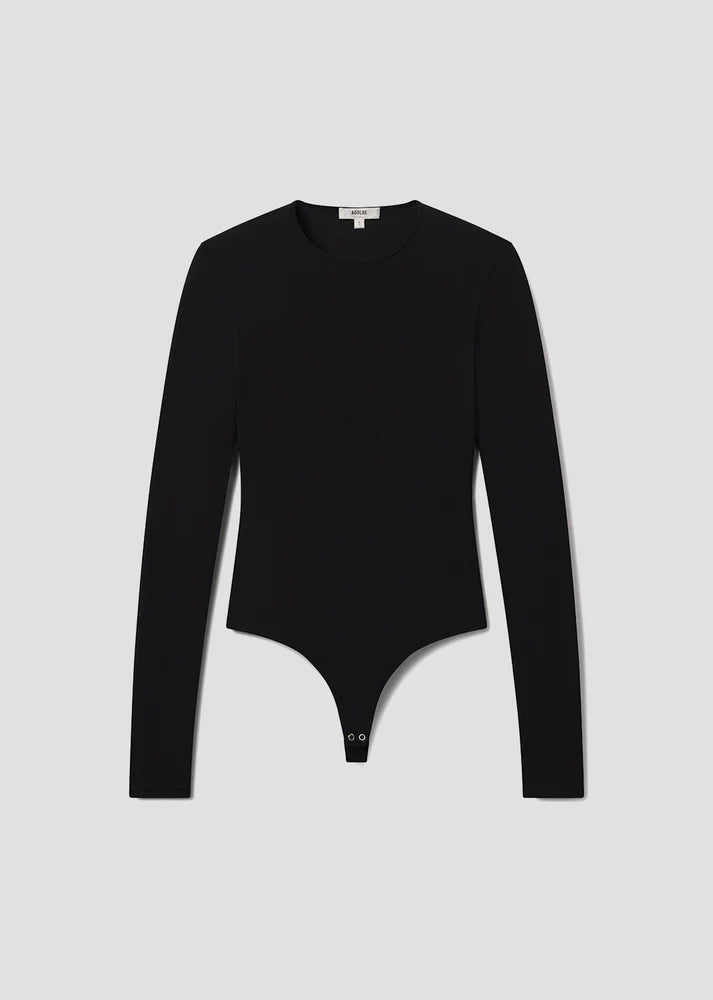 Looks Like: Dark brown long sleeve crewneck bodysuit