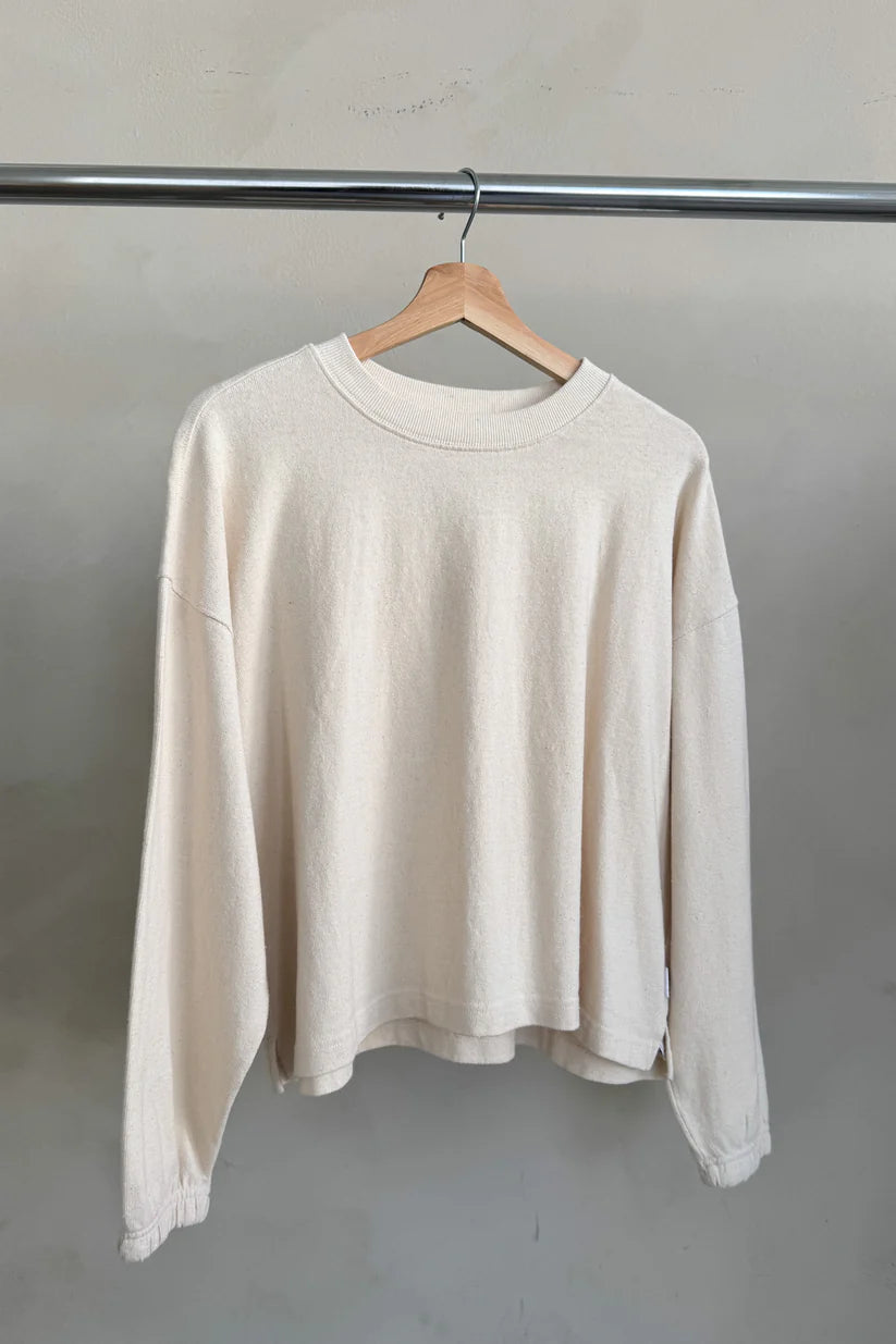We dreamed this beauty up while searching high and low for a simple long sleeve with a feminine touch. This essential long sleeve tee is made in a gorgeous 100% heavyweight cotton fabric. Super raw textured yet soft and airy! Elastic ruched sleeve opening creates a slight balloon sleeve effect worn down and scrunches up beautifully. This tee is garment dyed and pre-washed for a rich textured look.