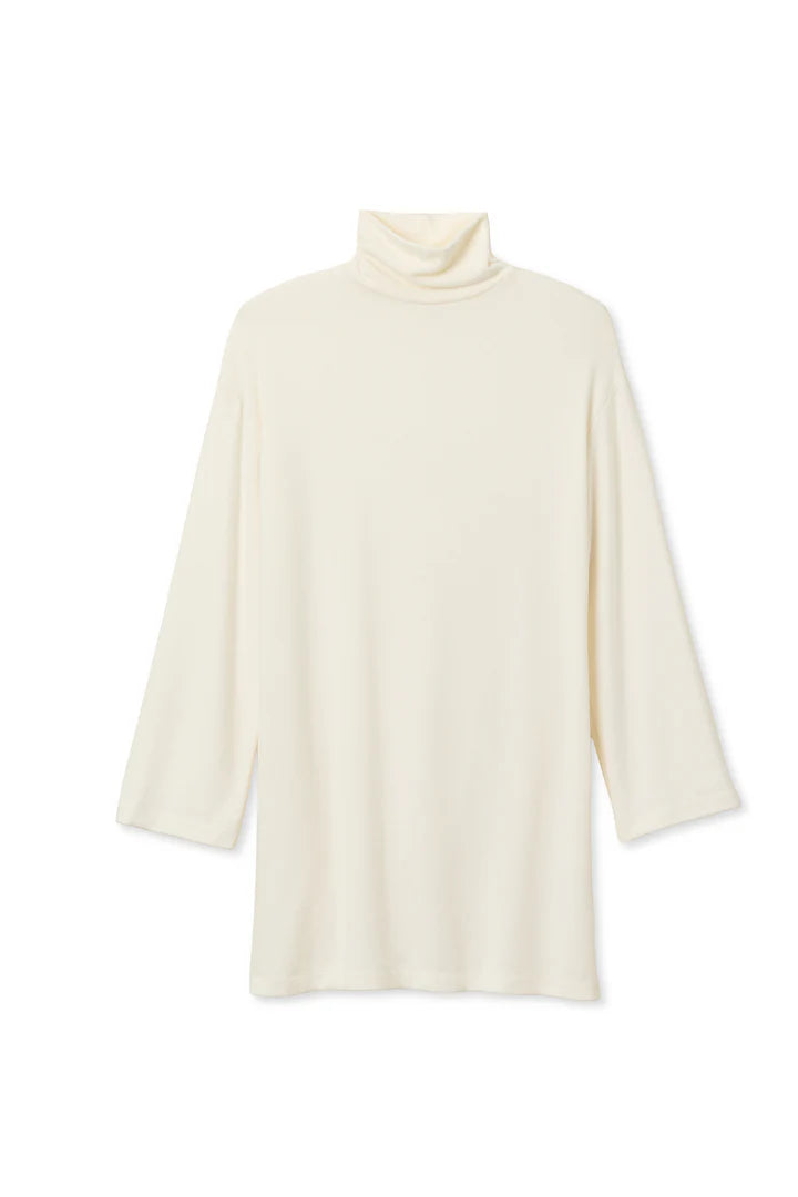 The Anette Mini Dress is designed for winter nights out—easy, comfortable, and quietly polished. Made from a brushed sweater jersey, it’s warm on the inside with a smooth, clean finish on the outside. A modern mock neck adds structure, while the slight A-line shape and soft bell sleeves bring movement and ease. It’s an effortless option for holiday gatherings, dinners, and any occasion that calls for looking put-together without trying too hard.