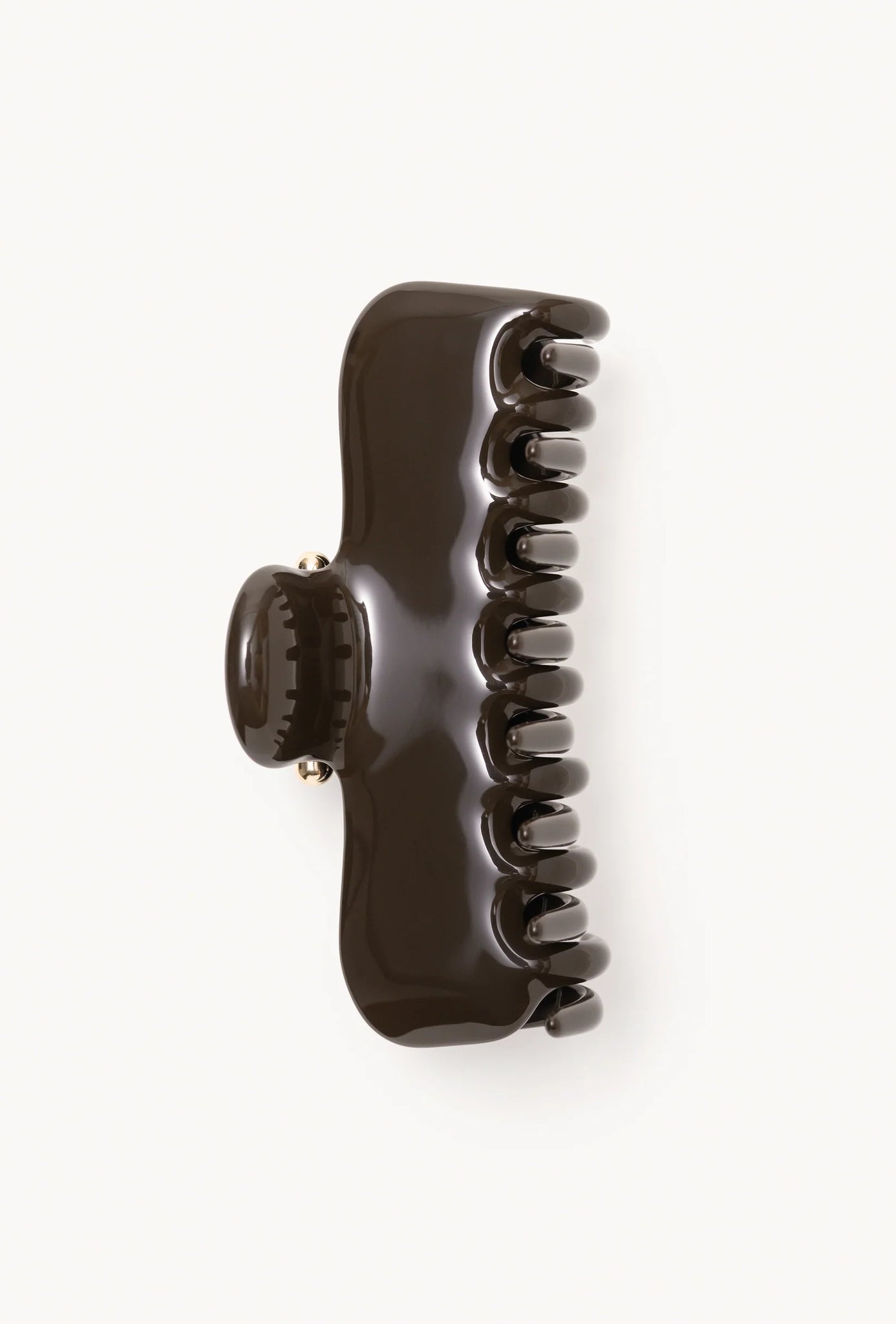 The No. 4 Claw Clip is uniquely designed for superior holding power. Its contoured surfaces close flat, providing an unparalleled grasp to create a wide variety of styling options with ease. Crafted through a precise pouring and polishing process, this clip boasts striking curves and contours, while its high-tension spring ensures all-day holding power, offering both style and reliability in one exquisite accessory.