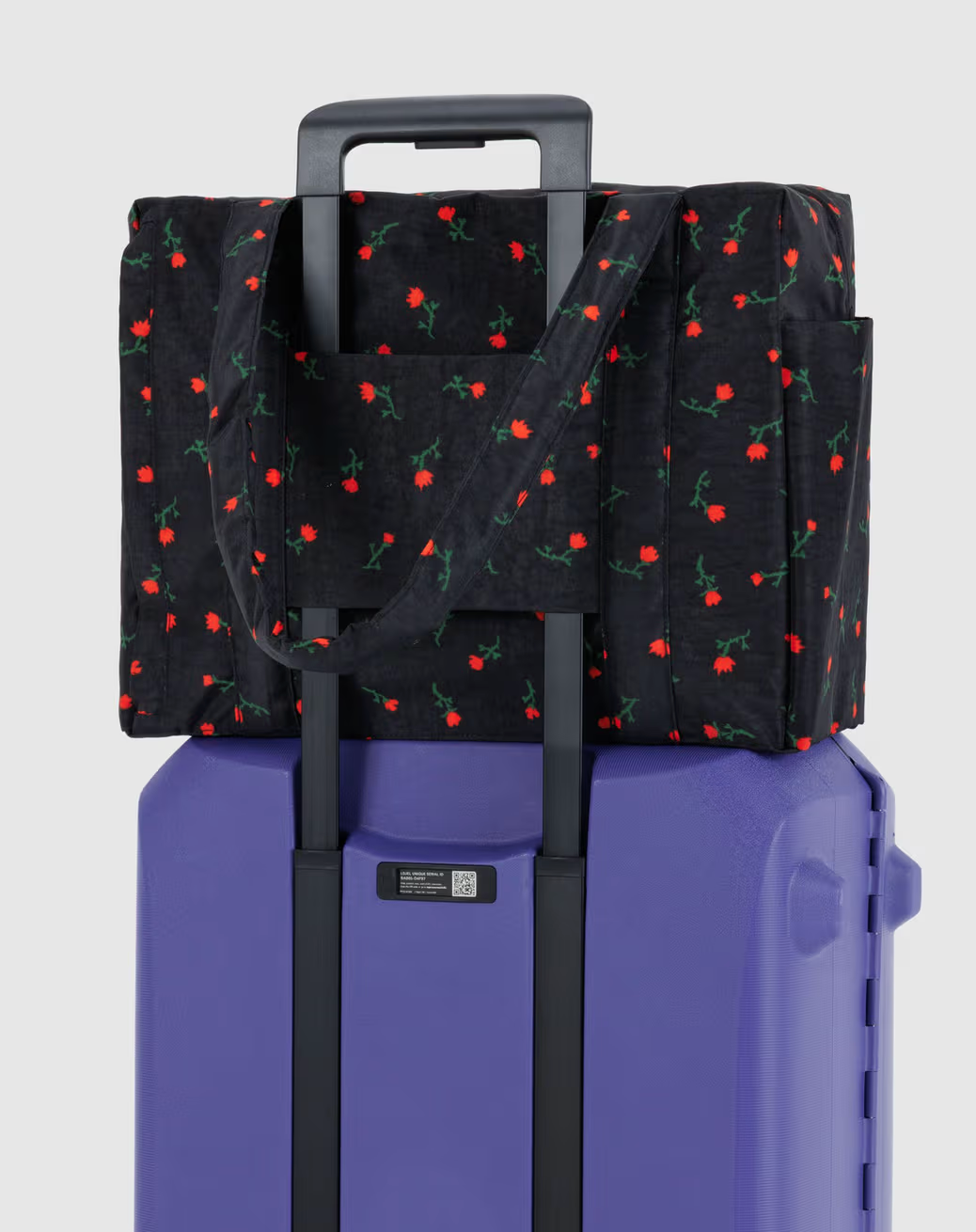 A travel bag optimized for flying: it fits under an airplane seat, on top of your roller bag, and on your shoulder. Exterior pockets keep your travel essentials within reach, including a tech pocket that fits up to a 16” laptop, and side pockets for your water bottle and boarding pass. The bag packs down into its interior detachable pouch for easy storage.