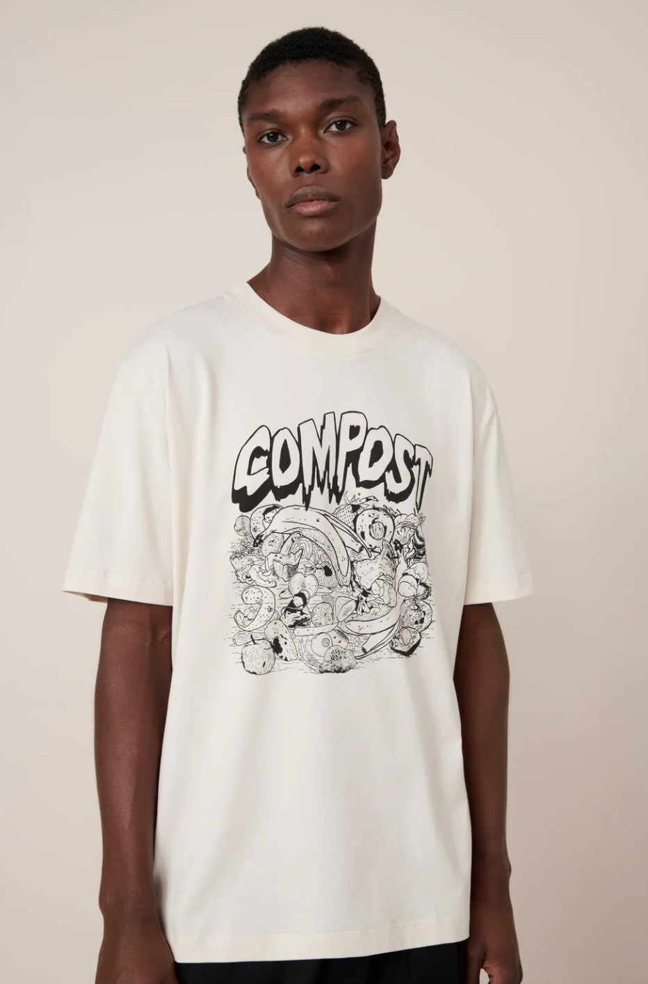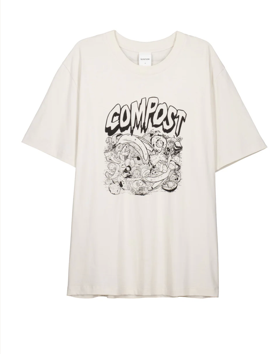 Our Staple Tee, made from mid-weight organic cotton jersey, features a custom illustration by @yeehawtheboys. Inspired by band tees and punk aesthetics, the Compost Staple Tee makes a bold statement, promoting the benefits of composting for our communities and the planet.