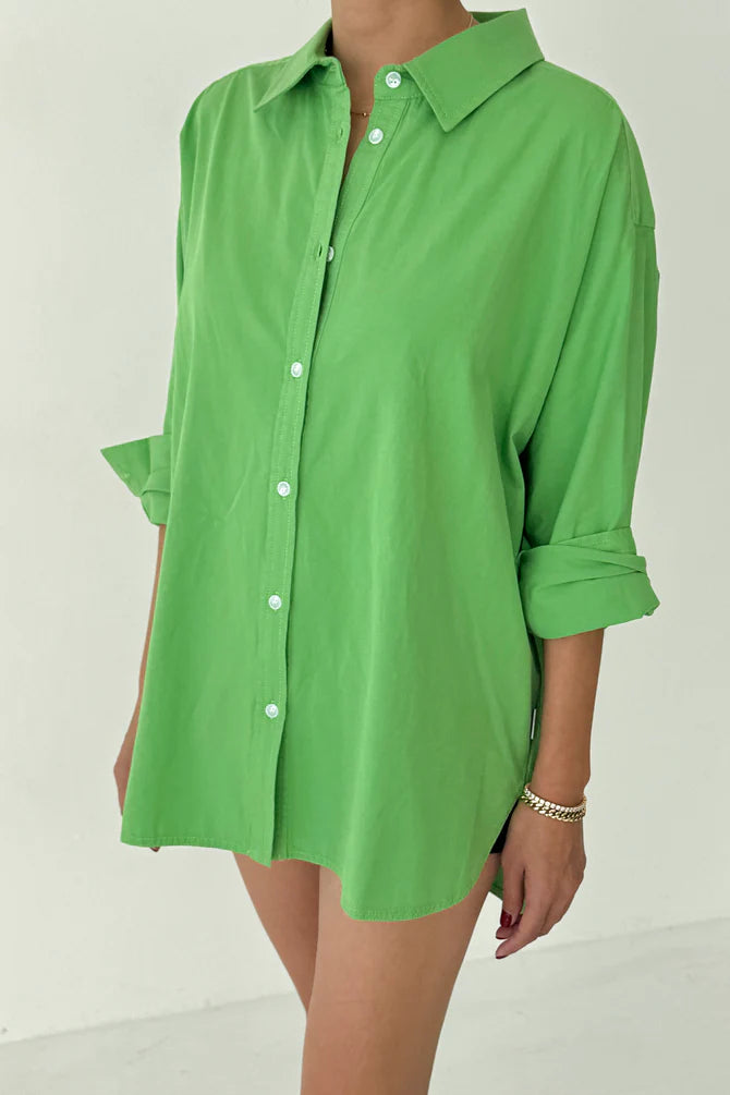 The button-up shirt, reimagined. Designed to feel like the perfect borrowed shirt, it features a slightly oversized, relaxed fit that works effortlessly layered or worn on its own. Made from 100% lightweight cotton with the feel of a classic poplin, it’s soft yet durable and suited for both casual and elevated looks. Finished with functional buttons and a classic rounded hem, this timeless essential is made for easy, everyday wear.