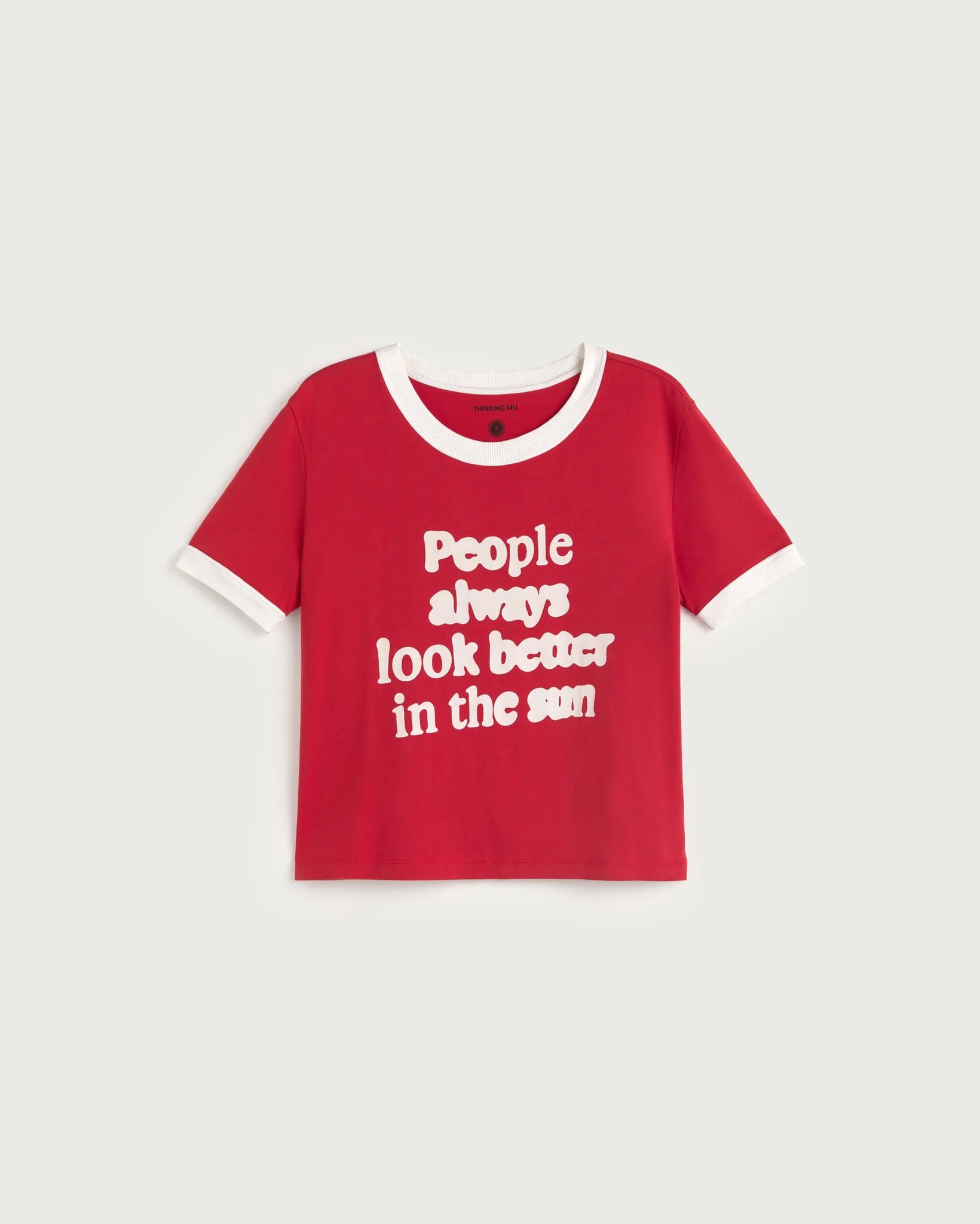 → Round neck→ Short sleeve→ Regular fit→ Garment details: printed text→ Fabric: organic cotton, weight 180 gsm (medium thickness)→ Original Thinking Mu design→ Garment length: short